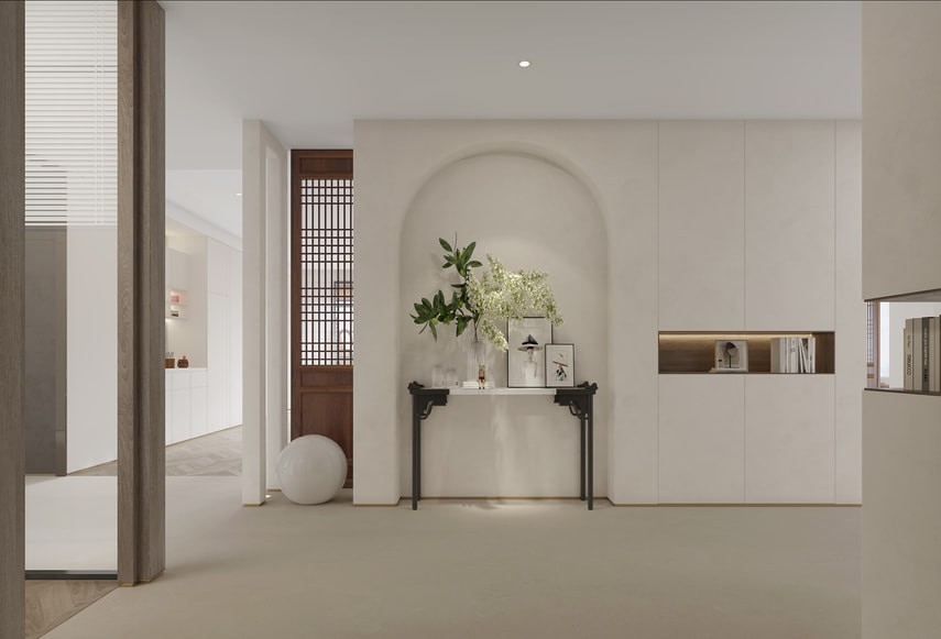 留白之美,以少勝多,以無(wú)勝有,是一種氛圍、情愫、意境之美。觀者憑著自己的想象構(gòu)思畫外之景,深思畫外之意,表達(dá)含蓄、簡(jiǎn)潔、意味深長(zhǎng)的境域。摒棄過(guò)分的堆砌和元素的亂用,以留白之境和生活本真,凸顯藏隱之間的詩(shī)性,營(yíng)造出了一個(gè)極致而樸實(shí)的東方雅致人文空間。