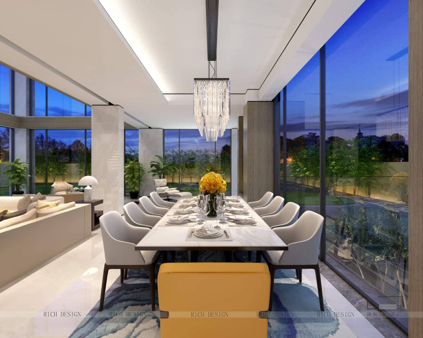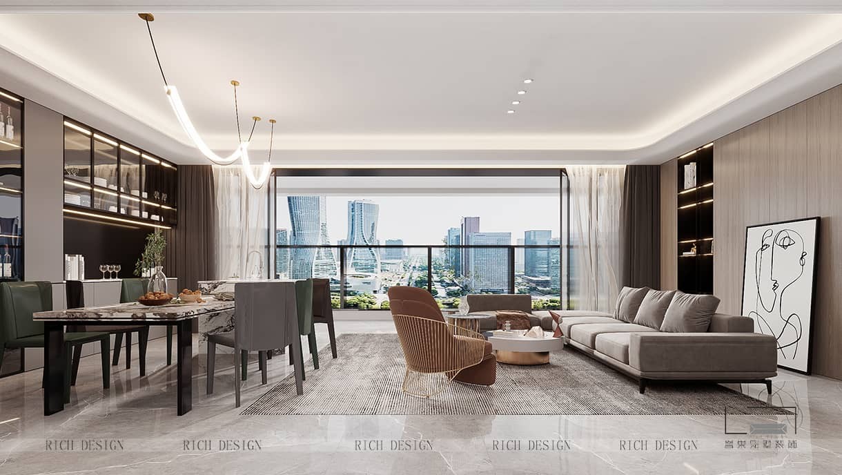 2.在餐桌下鋪一塊地毯,可強(qiáng)化用餐區(qū)域和客廳的空間劃分