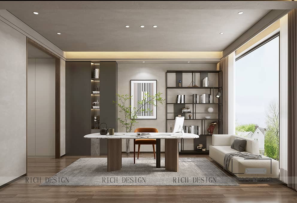 5.書房桌子下鋪設(shè)地毯,可增添書香氣息