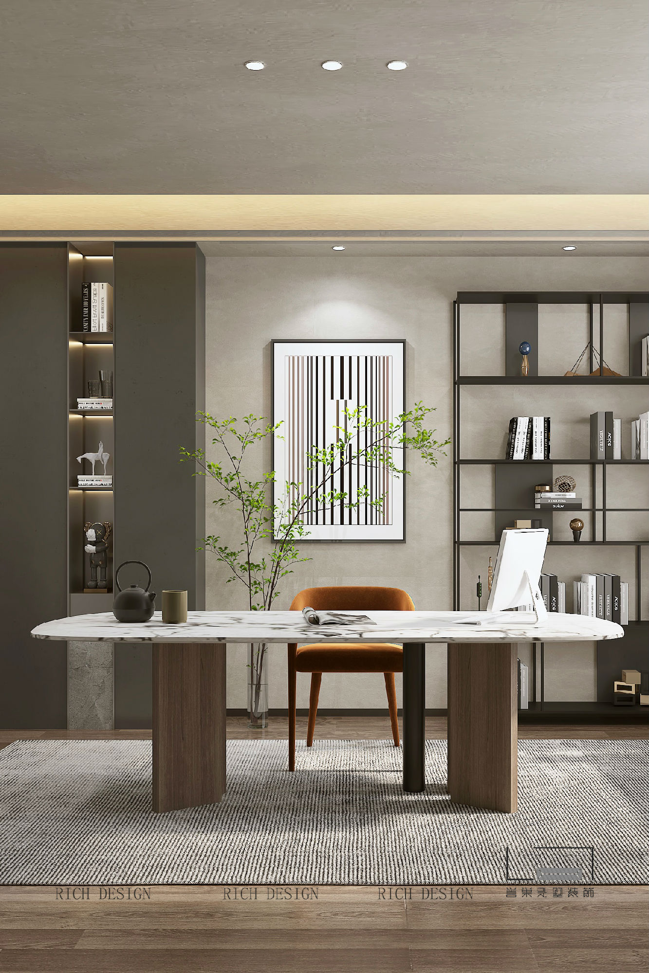清風(fēng)穿堂,翠意盈目,光影呈畫,生活之美自細(xì)微處漫出來。書房的設(shè)計(jì)讓人暫脫世俗的藩籬,游走在空間的象外之象、景外之景中,乘物游心,身心舒愜。