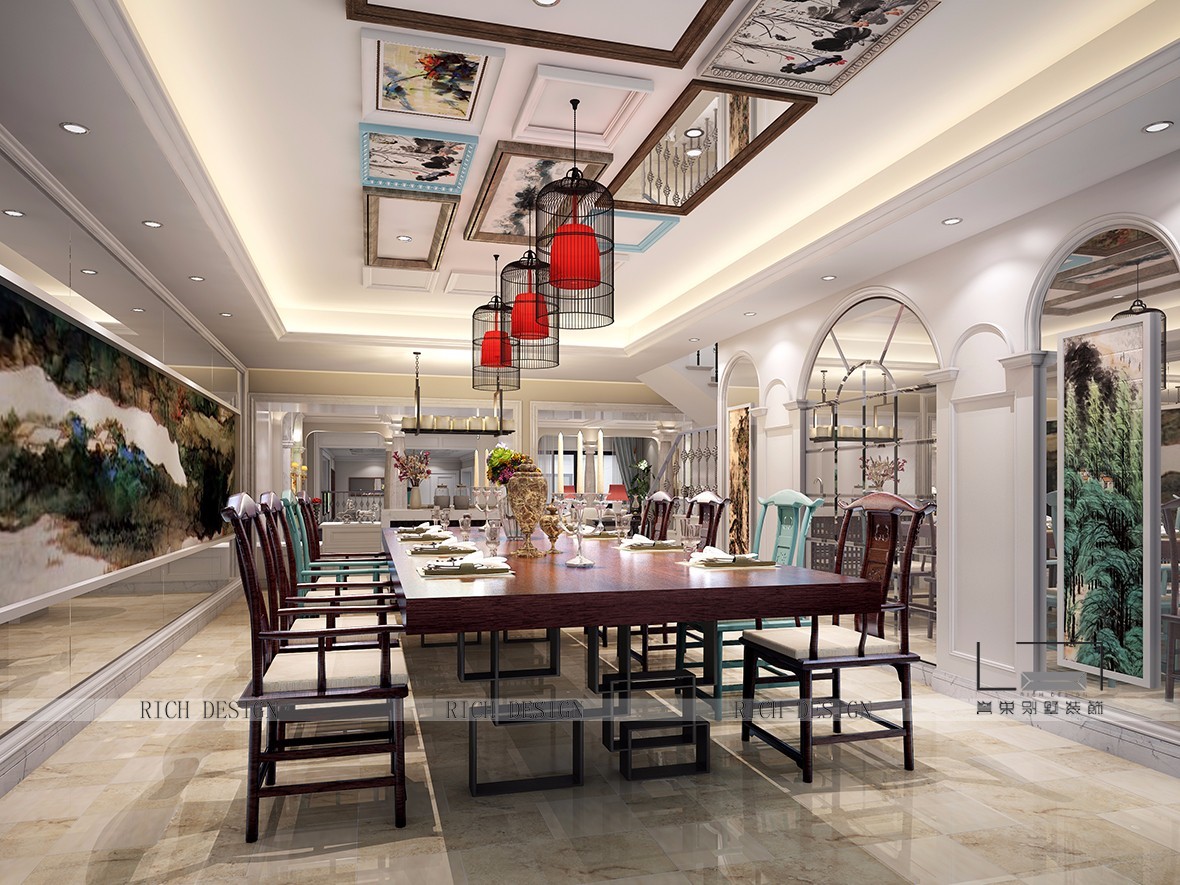 中式別墅裝修空間設計高貴穩(wěn)重、具備內(nèi)涵氣質(zhì),室內(nèi)選用現(xiàn)代裝飾手法家居結(jié)合中式元素,呈現(xiàn)清悠明快的空間氛圍,整個空間營造中國傳統(tǒng)文化的東方意境。