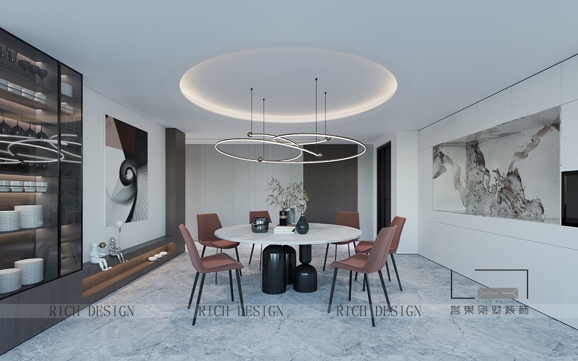 室內(nèi)空間設(shè)計講究層次美,注重虛實的結(jié)合。靜止的空間,直線型的立面線條,采用內(nèi)嵌式的圓形頂燈,展現(xiàn)出亦動亦靜的空間層次之美。在符合居住需求之外,增加娛樂休閑功能,有機的融入其中,結(jié)合光和影、自然和現(xiàn)代,營造高雅舒適的居住空間。