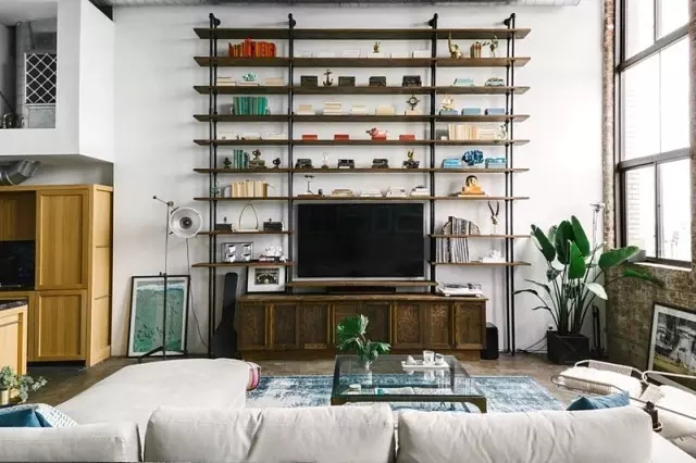 定制的儲(chǔ)物架進(jìn)行裝飾,簡(jiǎn)潔利落的架體上,擺放著各種精致擺設(shè).