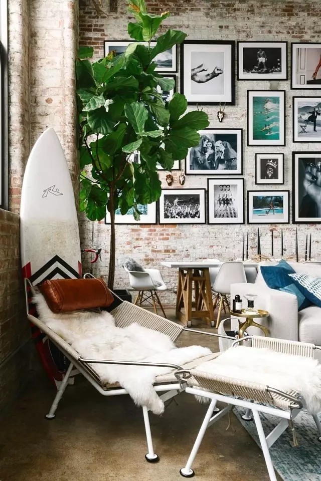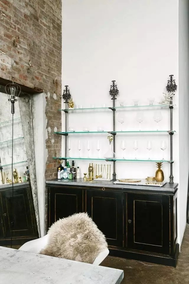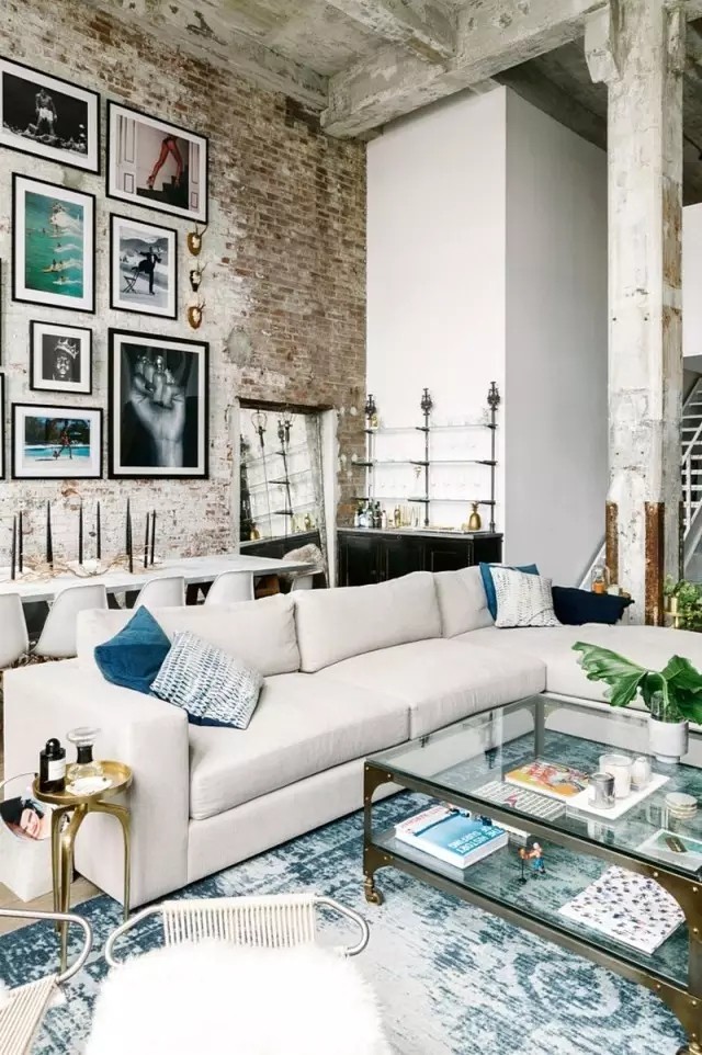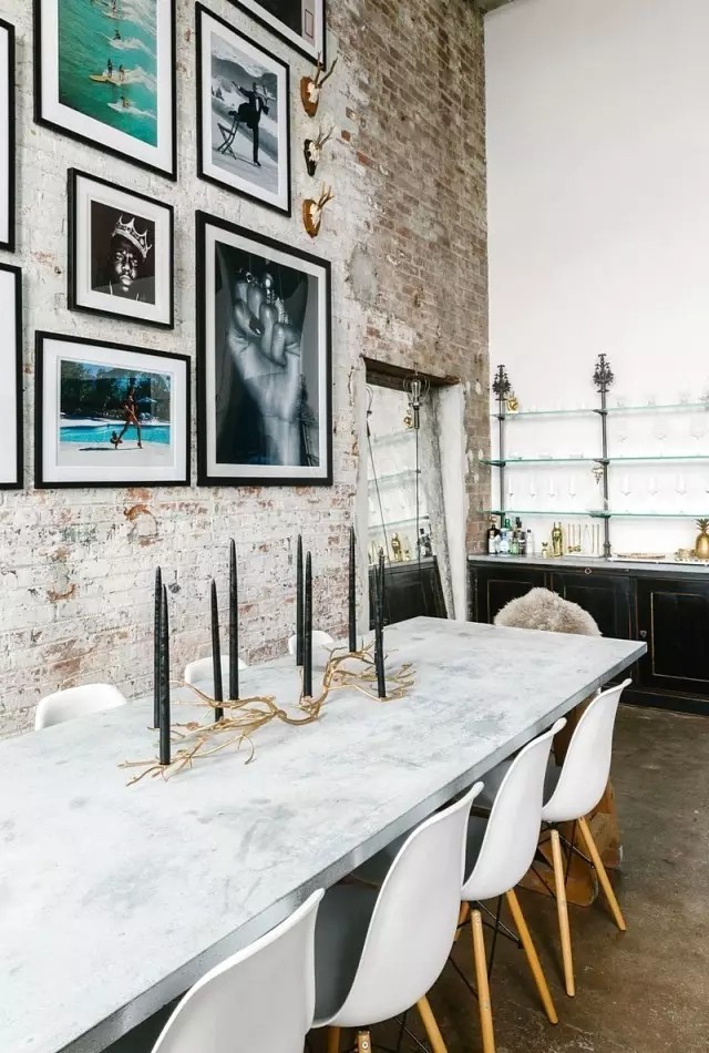 從美式的優(yōu)雅,到粗獷的工業(yè)風(fēng),甚至是摩洛哥精致華麗的飾品都成為家中的設(shè)計(jì)元素。 大量裸露的墻磚,僅將其余部分粉刷成白色,與深色調(diào)的地面共同營(yíng)造出原始、粗獷的工業(yè)魅力。