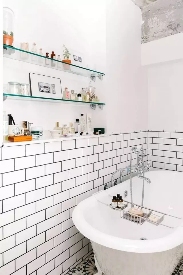 利用黑白花磚鋪設(shè)地面,白色的瓷磚用黑色勾縫,簡(jiǎn)潔利落的黑白搭配,彰顯出潔凈與時(shí)尚。