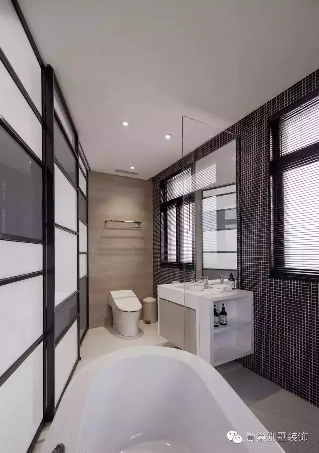 傳統(tǒng)衛(wèi)浴三大件大多是挨著主墻依次排列,會顯得擁擠,甚至擺放不下。其實擺布大可不必如此中規(guī)中矩。馬桶沒必要一定得靠在墻中間,在兩面墻的拐角處一樣可以正常使用。同樣,浴缸也可根據(jù)空間的大小選擇長形、方形甚至圓形。
