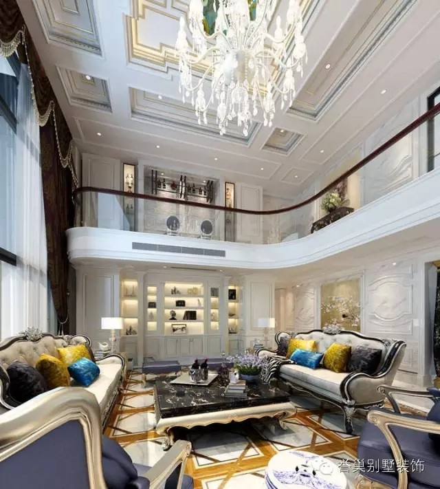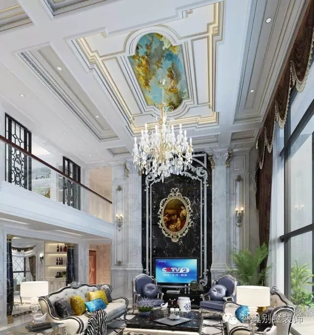 客廳的形式上以浪漫主義為基礎,大理石瓷磚、多彩的織物、色彩鮮艷的沙發(fā),精致的法國壁掛,華麗的枝形吊燈營造氣氛整個風格豪華、富麗,充滿強烈的動感效果。