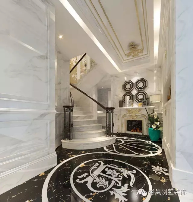玄關的位置,地坪大理石以水刀切割,非常富貴大器,而深色主題從玄關即開始發(fā)展。