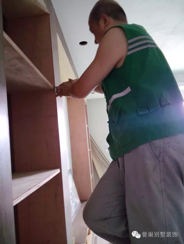 一戶工地,木工師傅正在做柜子。工程部溫經(jīng)理仔細(xì)看了一下,表?yè)P(yáng)這位木工工藝精湛,做活認(rèn)真